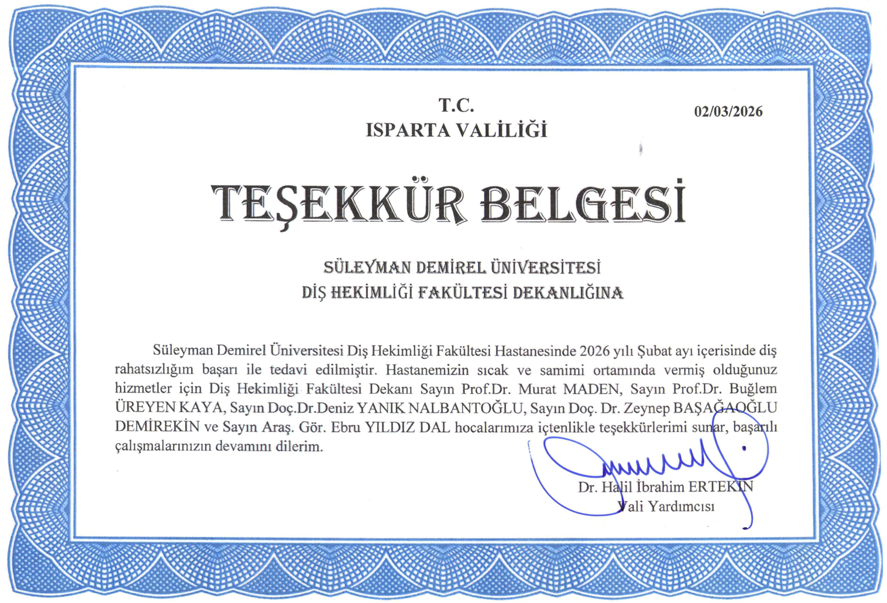 Isparta ili ve çevresine büyük bir titizlikle, özveriyle ve son teknolojik gelişmelerin izinde 30 yıldır hizmet vermekteyiz. Isparta Valiliği tarafından kurumumuza başarılı çalışmaları için teşekkür belgesi takdim edilmiştir.