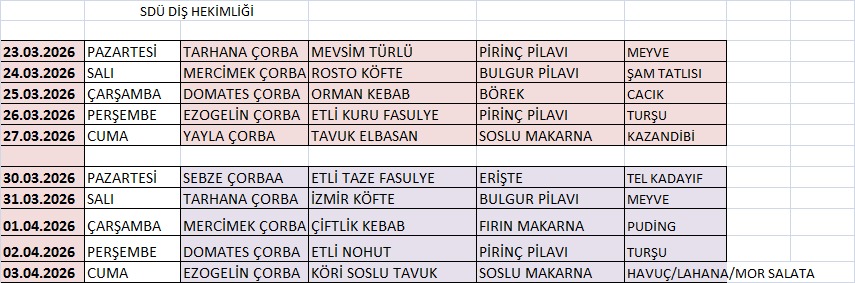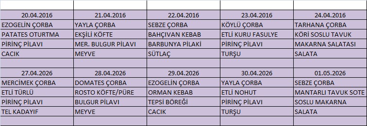 Hastane Yemek Listesi